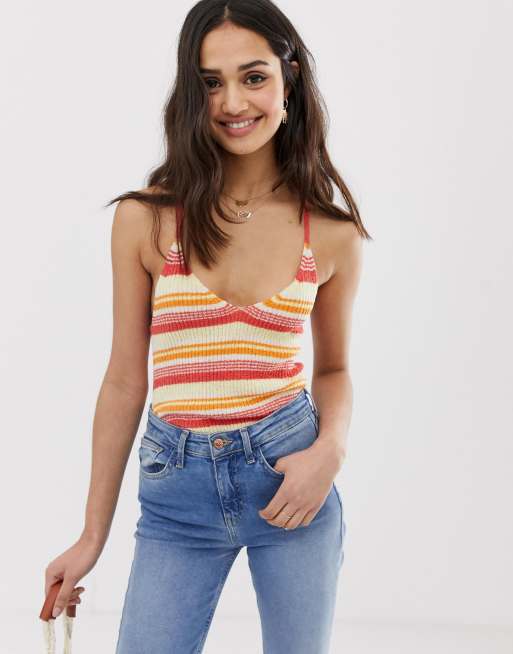 Cotton knit singlet womens white cotton knitted singlet with thick straps and a low v back detailing by subtitled.